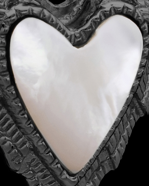 This exceptional heart is a wonderful way to honor the life of a loved one. Each Divine Heart keepsake jewelry has been crafted of black rhodium plated over silver and will hold approximately a pinch of cremated remains. The black and white combination of the Black Rhodium Plated Divine Heart cremation jewelry is quite versatile and because you are dealing with two different mediums - mother of pearl and black plated metal - the contrast between the two is striking. The sides of the Black Divine Heart remembrance charm has a feathered appearance which adds yet another dimension to the beauty of the jewelry urn. Size: 5/8" w x 3/4" h