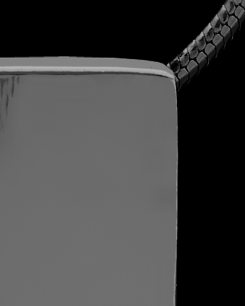 The Black Plated Natural Rectangle keepsake jewelry is a stunning reminder of those that have passed on. The Black Plated Natural Rectangle cremation jewelry is simple yet sends a message of love and remembrance to not only those who wear it but also those who view it on a person. The exterior of the Natural Rectangle has no decoration or accents, just clean lines and a smooth polished finish. The Black Natural Rectangle is open on both sides at the top and the black chain passes through from side to side with ease. Highly suggested is adding a few characters or lines of engraving on the Black Rhodium Plated Natural Rectangle remembrance pendant as a way that you can further the personal nature of the bold keepsake! Size: 3/8" w x 1/2" h