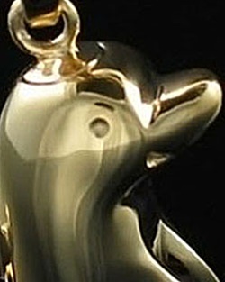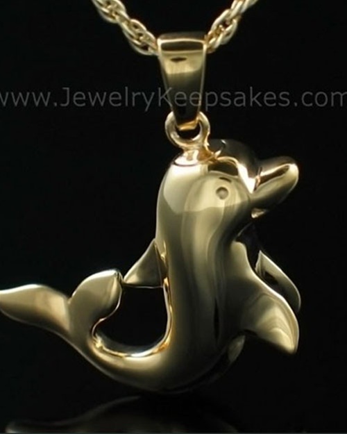 The resplendent 14K Dolphin urn keepsake is a wonderful tribute to your loved one. This high quality urn pendant will hold a small amount of cremains in remembrance of your loved one. A threaded stopper assures you that your loved ones cremains are protected inside your keepsake urn pendant. So full of laughter and so full of love, locate the threaded screw and fill your Gold Dolphin remembrance charm with approximately a pinch of cremation ashes, some ground from their favorite trail they walked, sand from the beach or even from out under the tree that they planted when you first moved into your home. The Gold Dolphin comes with a chain. Size: 1/4" w x 1" h