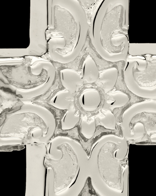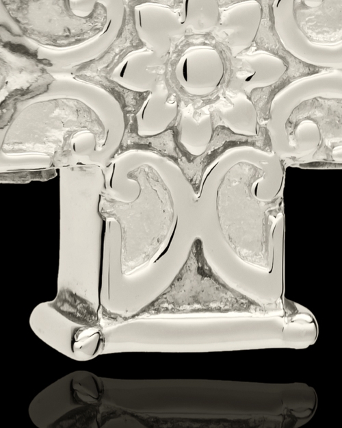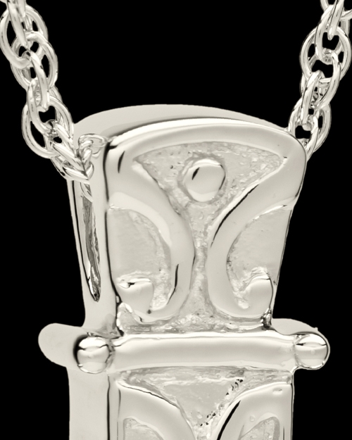 Our beautiful solid 14 karat gold Companion Elegant cross cremation locket is a great way to choose a special memory of your loved ones to hold close to your heart. It has two chambers that can hold small amounts of cremains from two individuals that have been important to you in your life. Keeping your parents or grandparents together in memory is a very unique and special way to honor those that have gone on. The White Gold Companion Elegant Cross jewelry has a small stack at the top that is also decorated with beautiful detailing and the ends of the points of the cross roll up slightly and are raised. The design on the front of the Companion Elegant Cross in white gold is also a raised design. Each Companion Elegant cross memorial jewelry includes a small funnel and instructions to help you fill your pendant and our solid 14 karat white gold jewelry urns are delivered in two to three weeks time. Size: 3/4" w x 1" h
